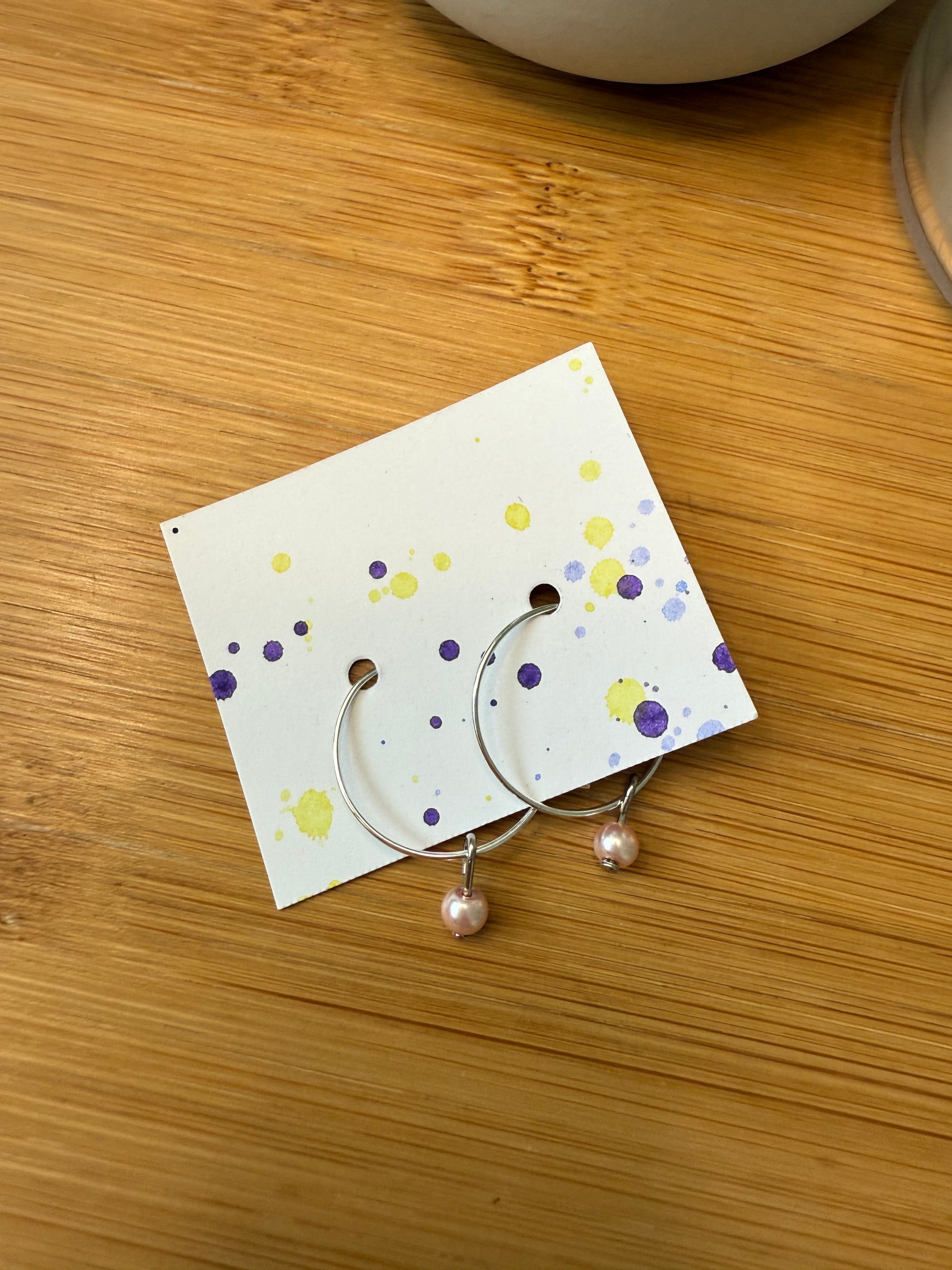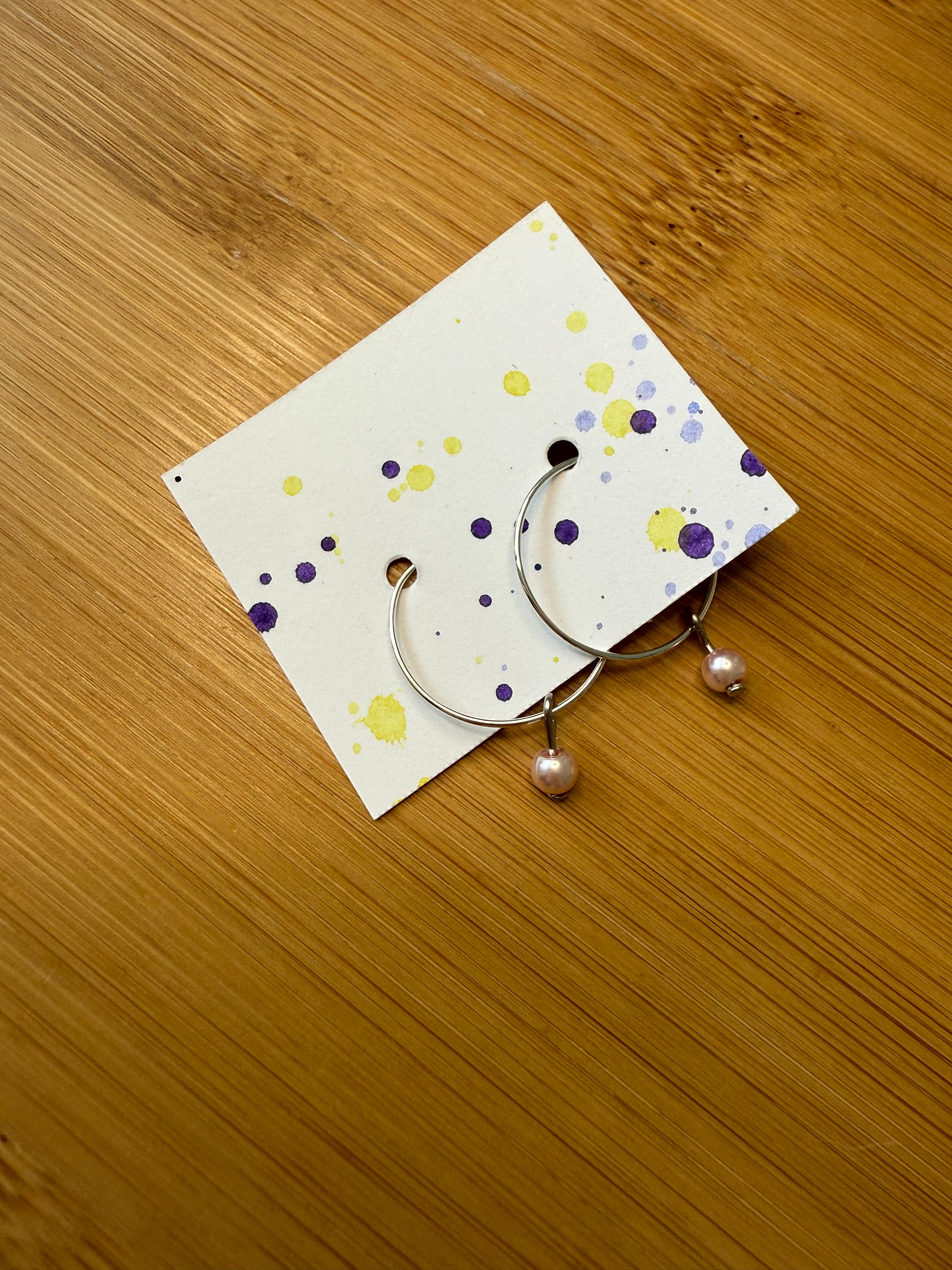 Kruhové naušnice s bílou nebo růžovou perličkou
