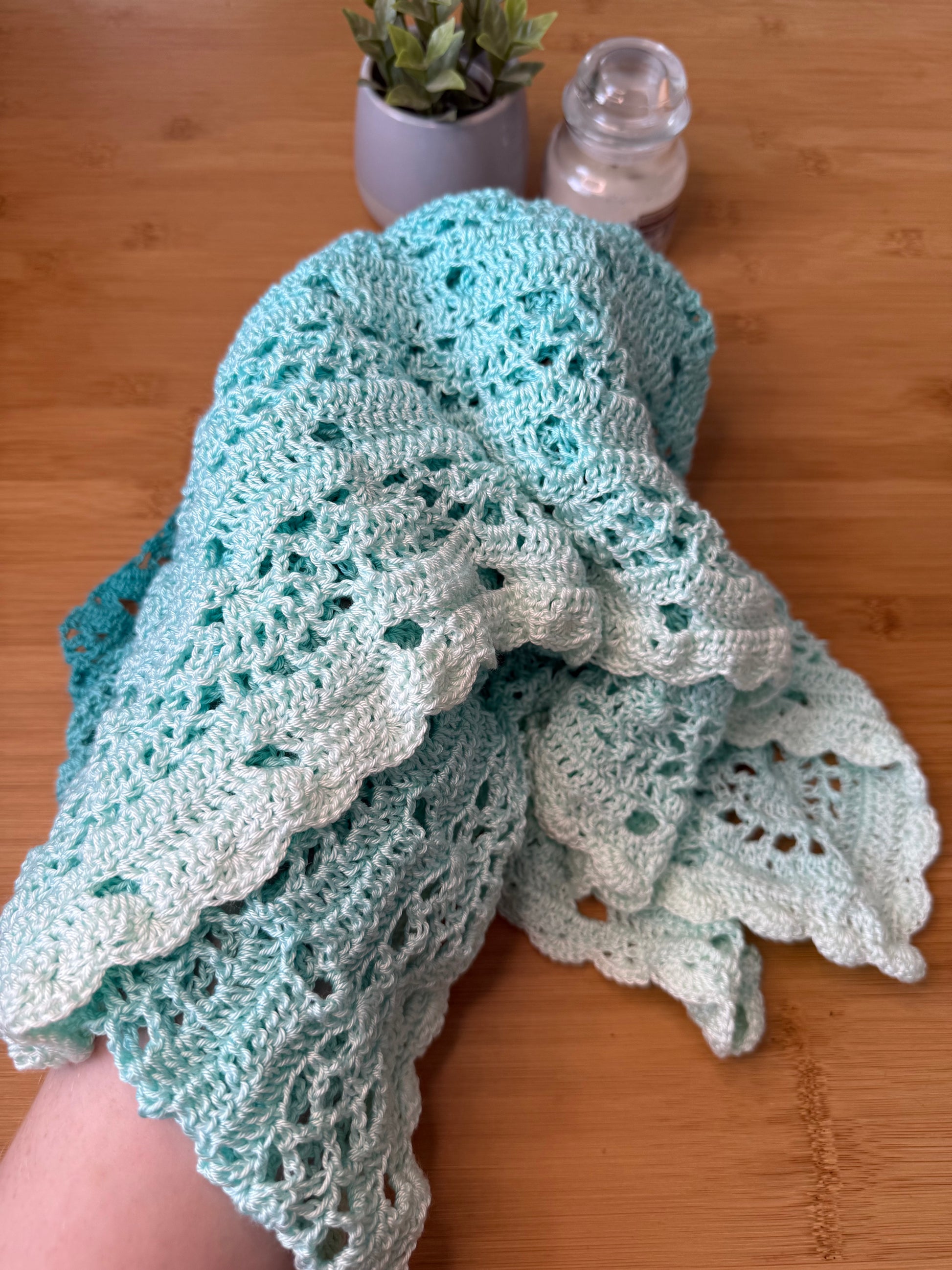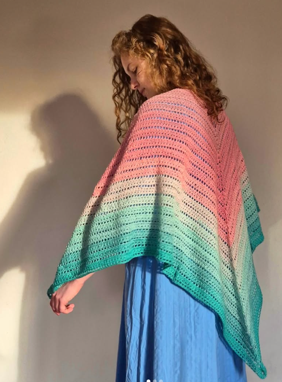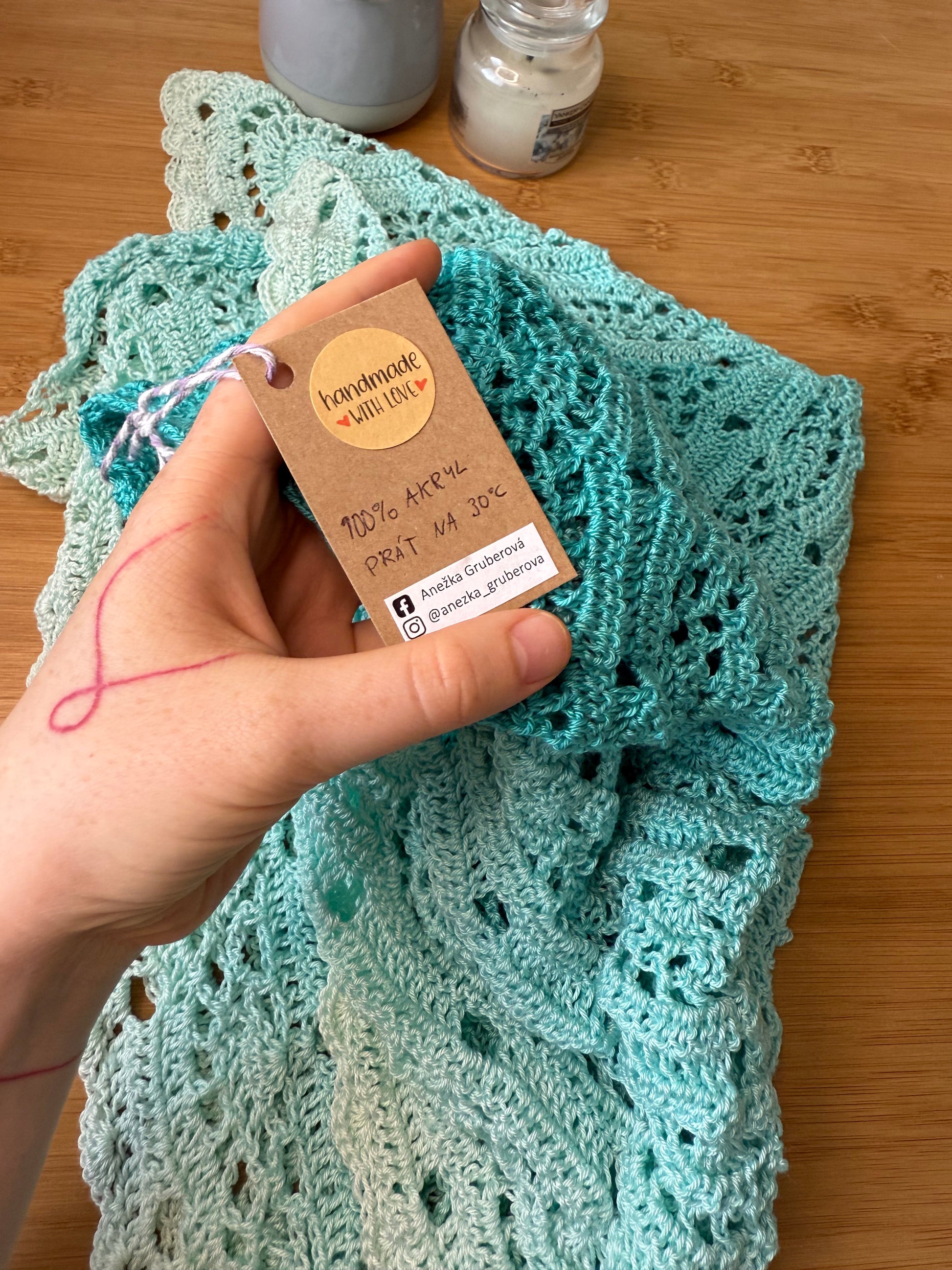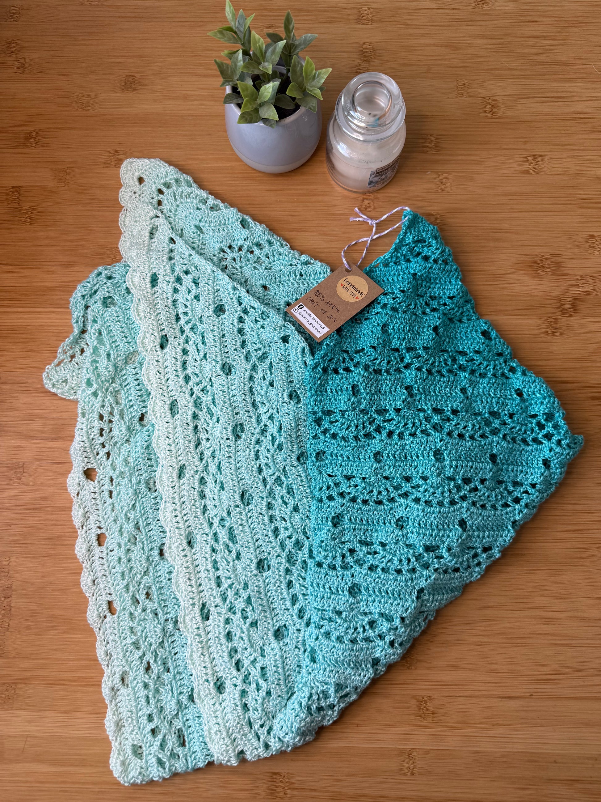 Ručně háčkovaný velký šátek modré ombré