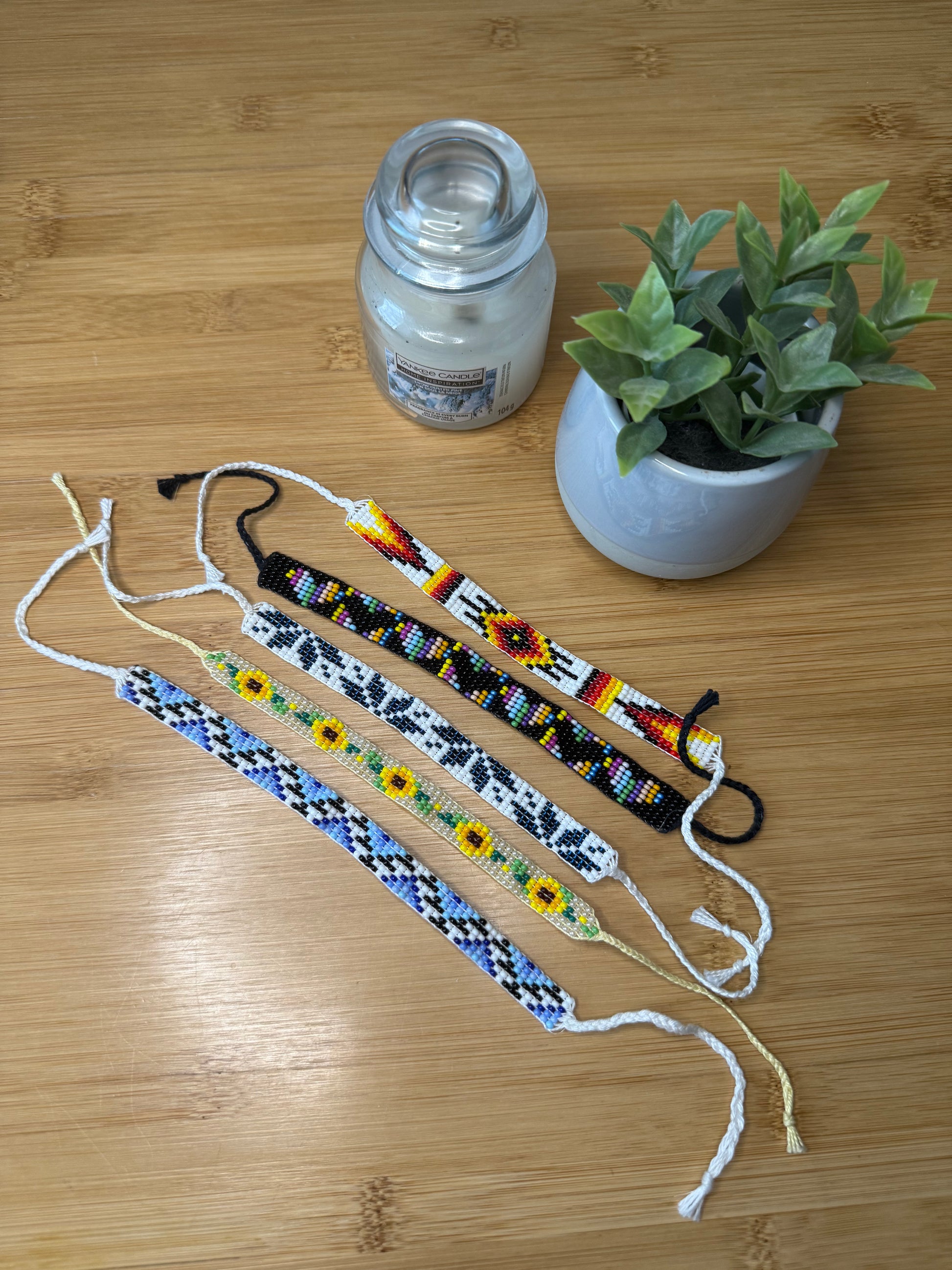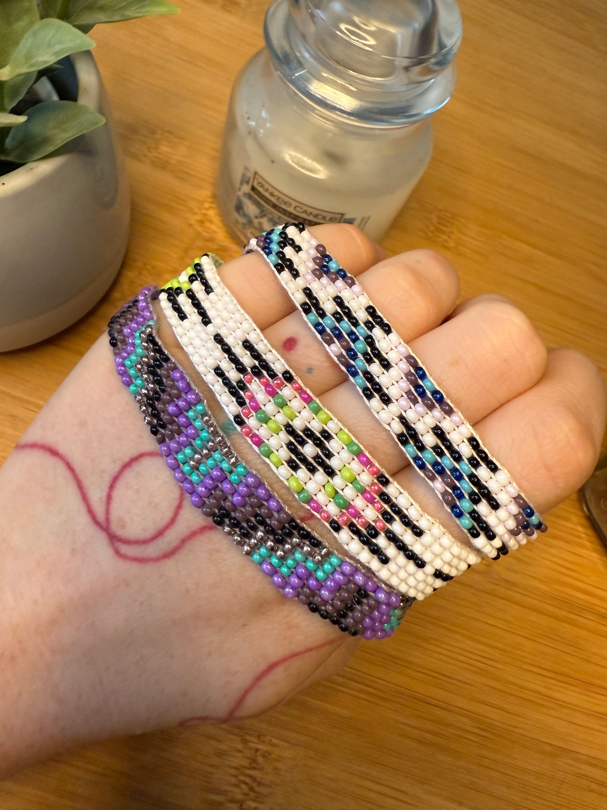 Originální ručně tkaný náramek, který v sobě spojuje tradiční řemeslo a moderní design. Každý kus je pečlivě vyráběn z kvalitních českých skleněných korálků Preciosa a nese jedinečný motiv, díky kterému se stává osobitým doplňkem pro každodenní nošení i speciální příležitosti.