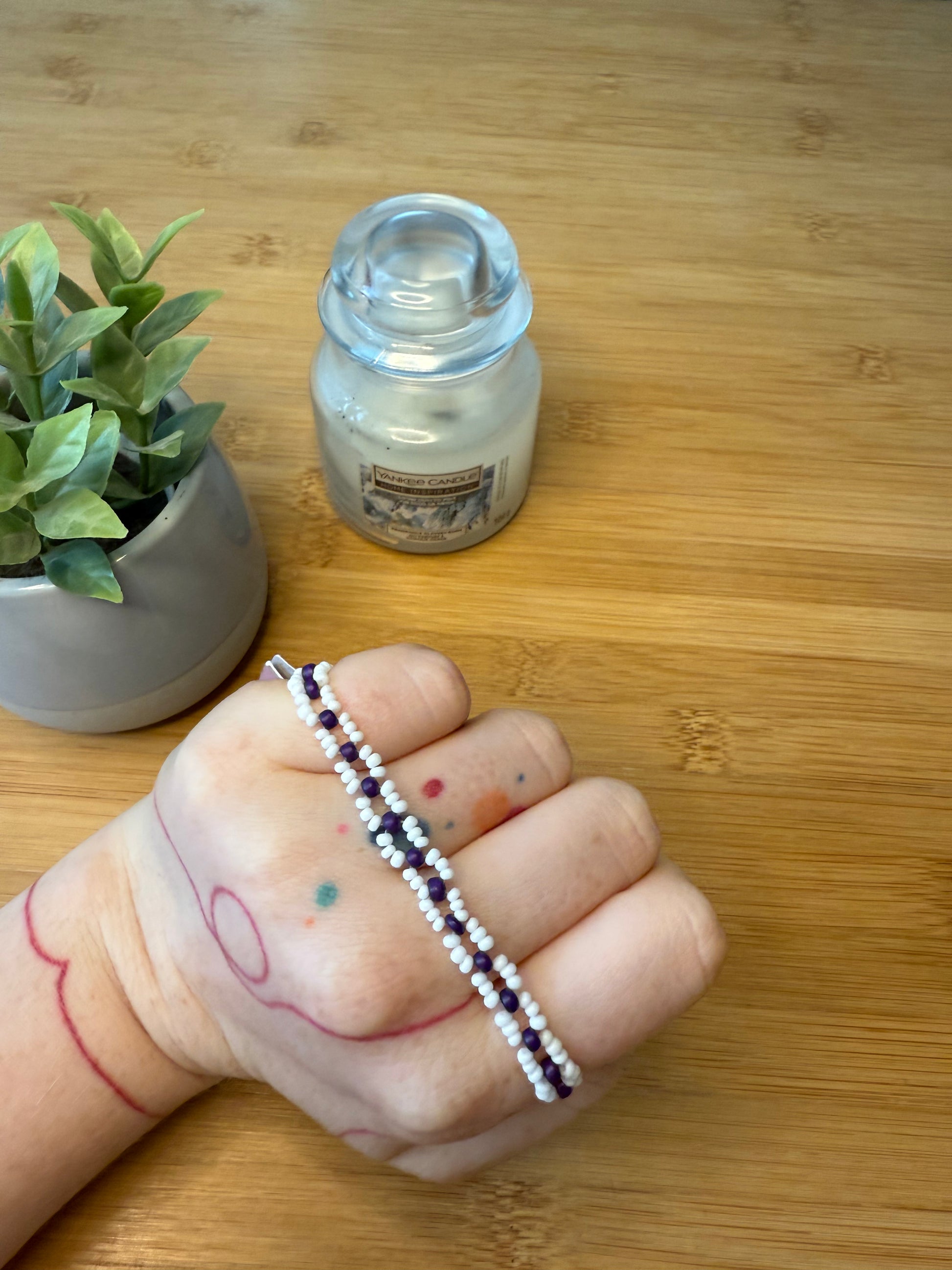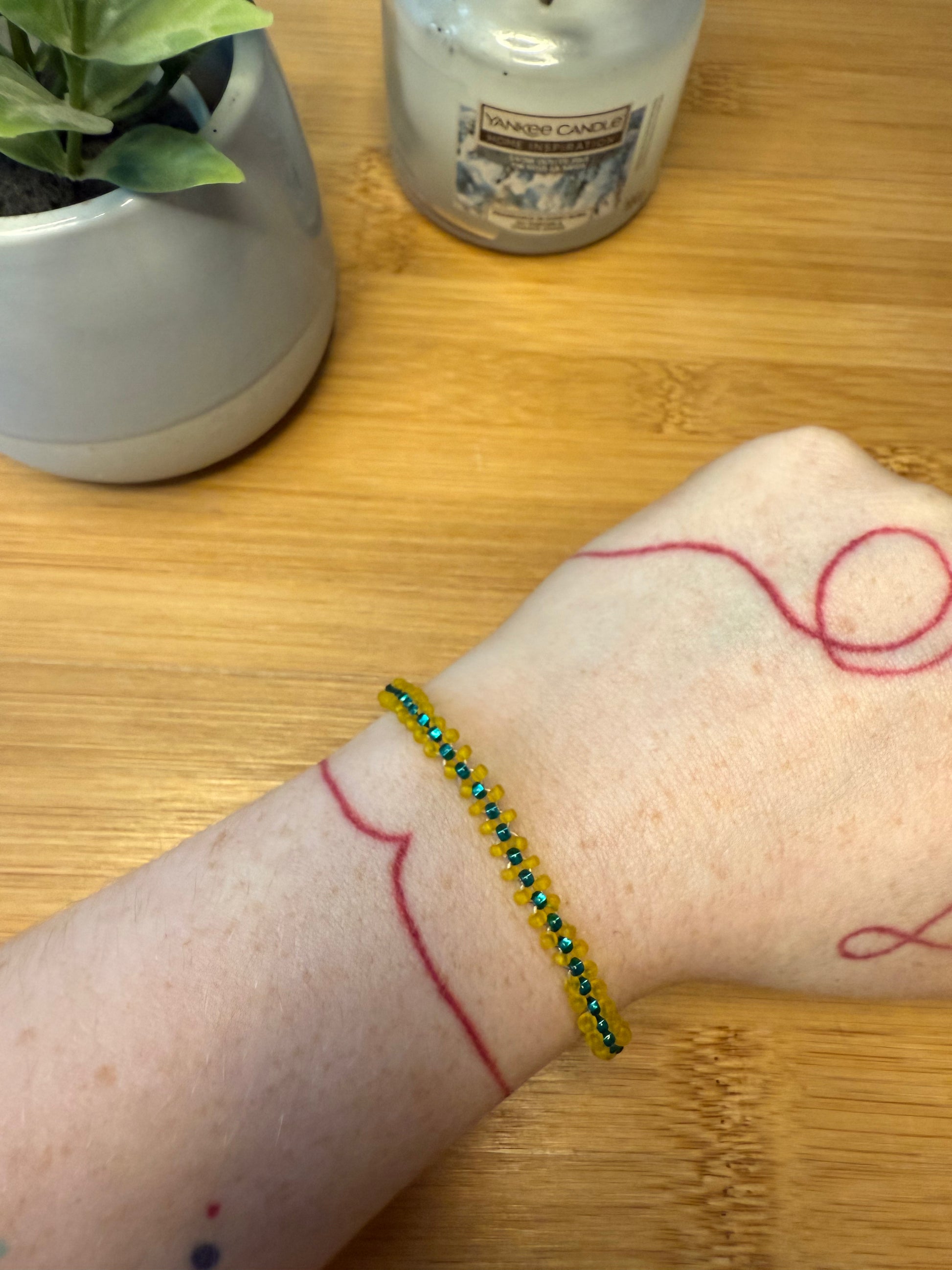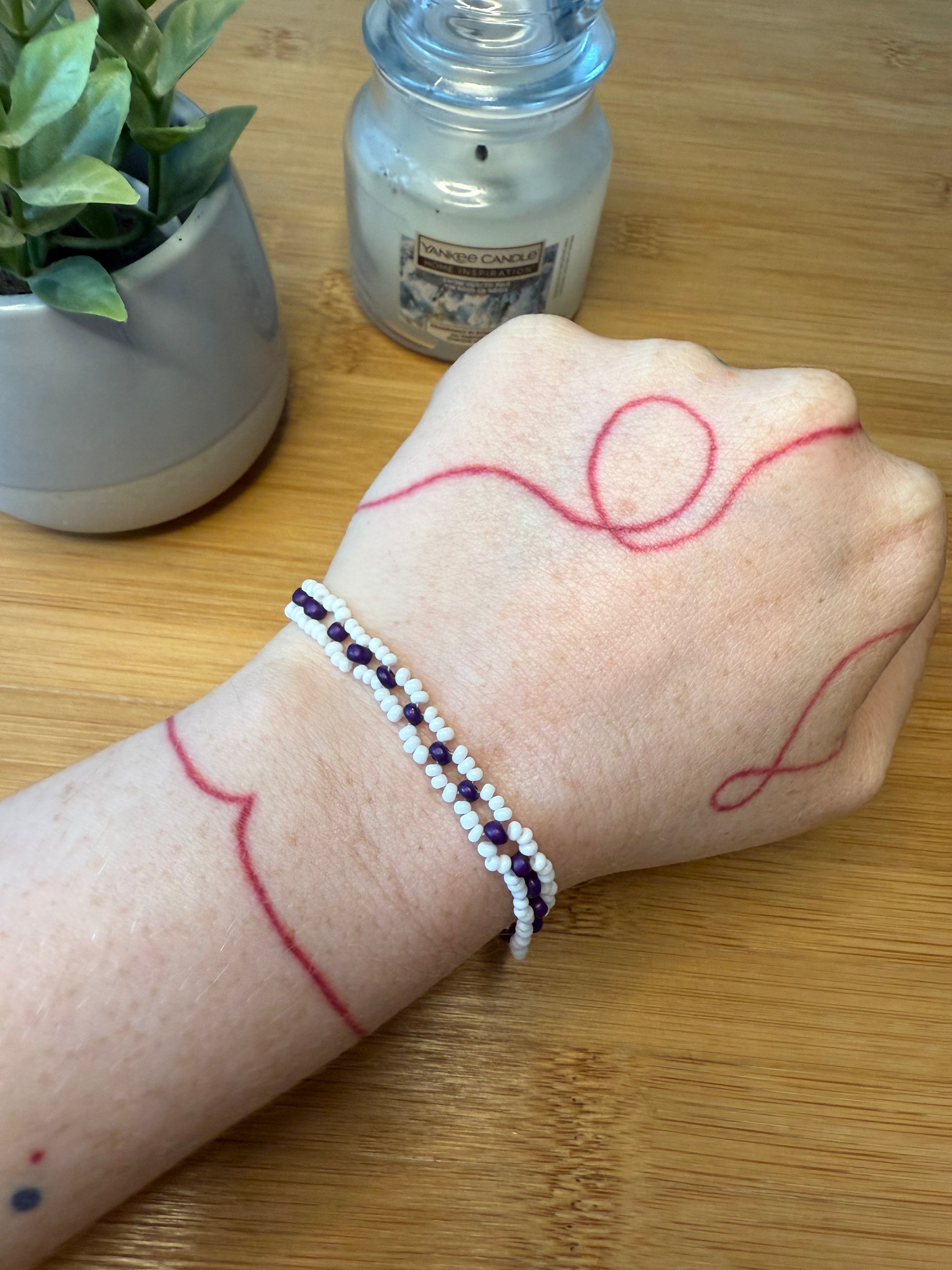 Úzký plochý korálkový náramek dva druhy