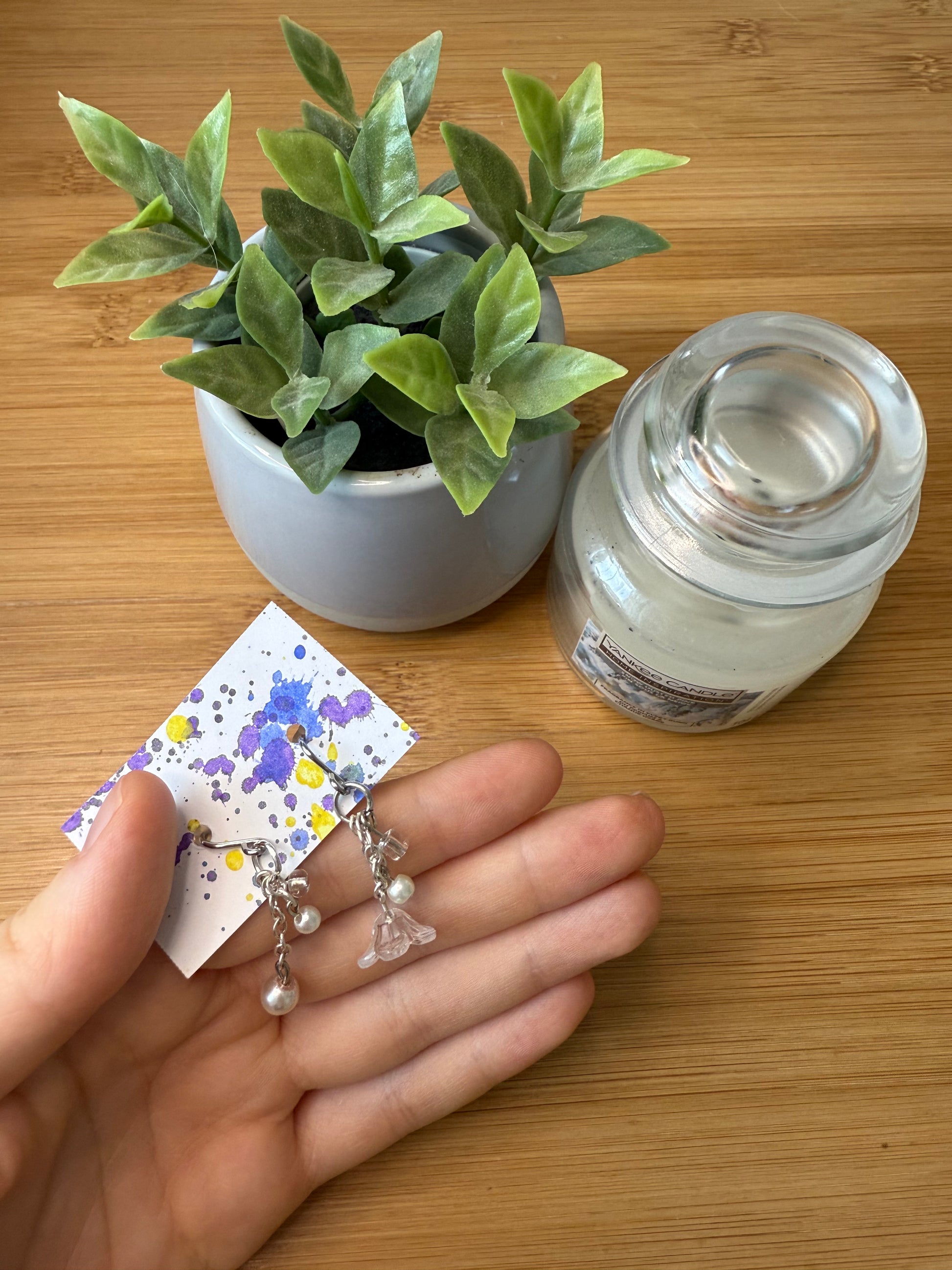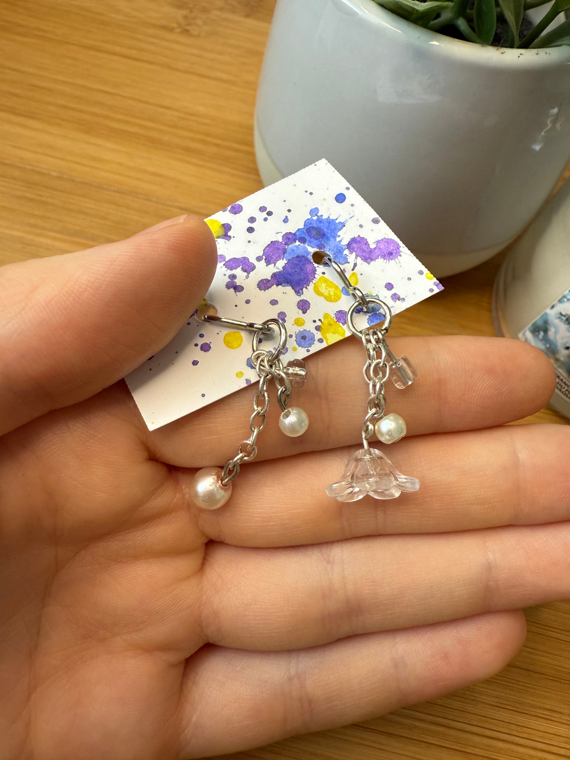 Visací náušnice stříbrné s květem a perličkou