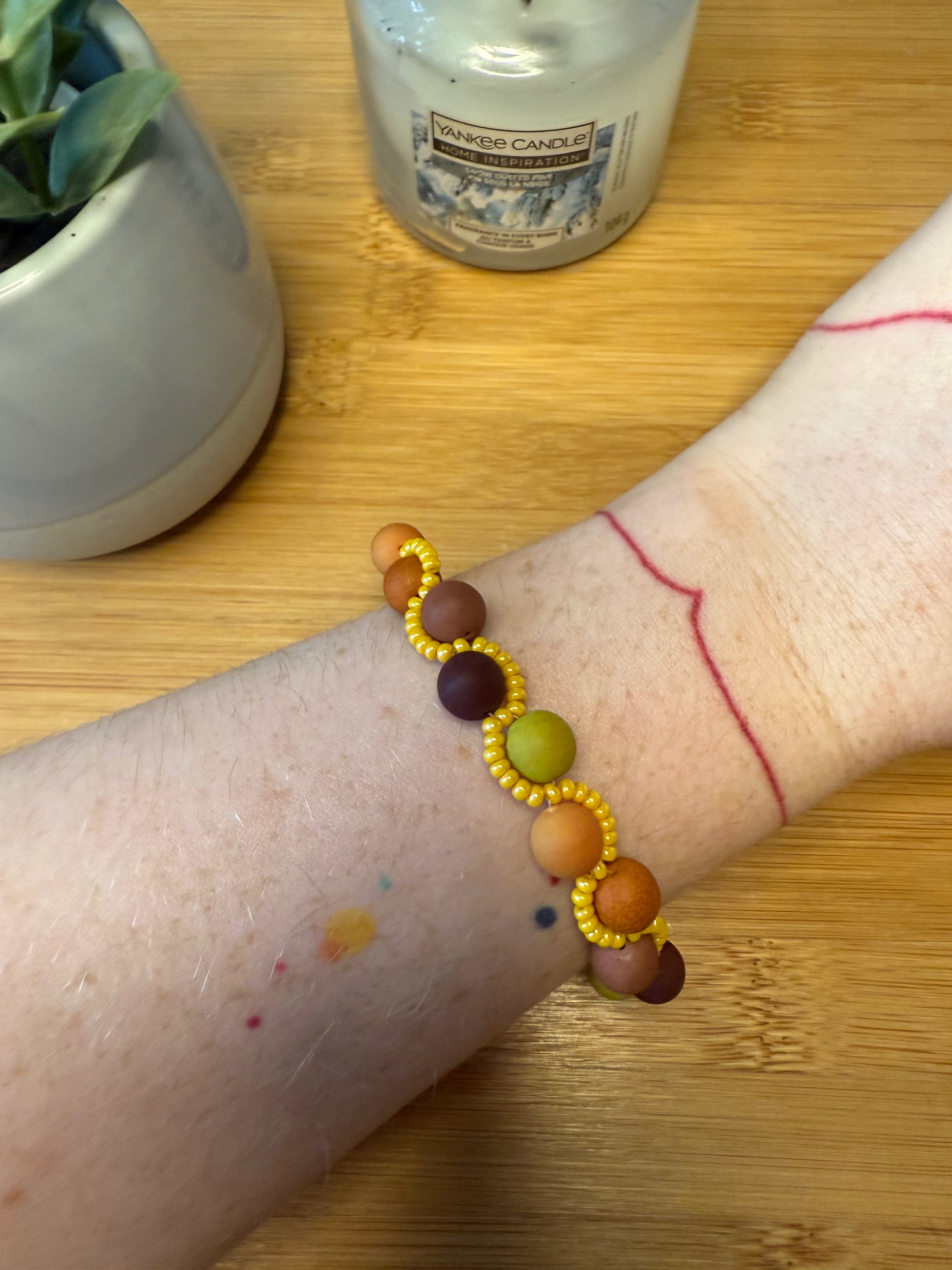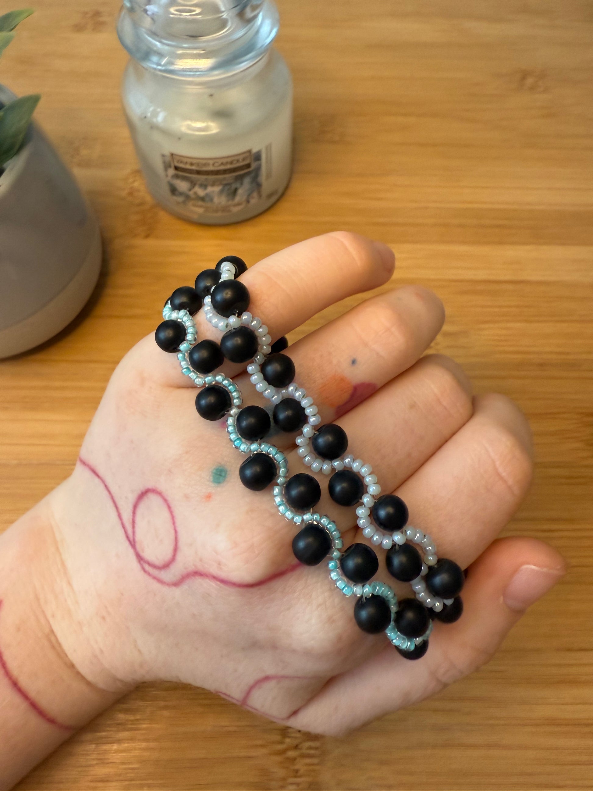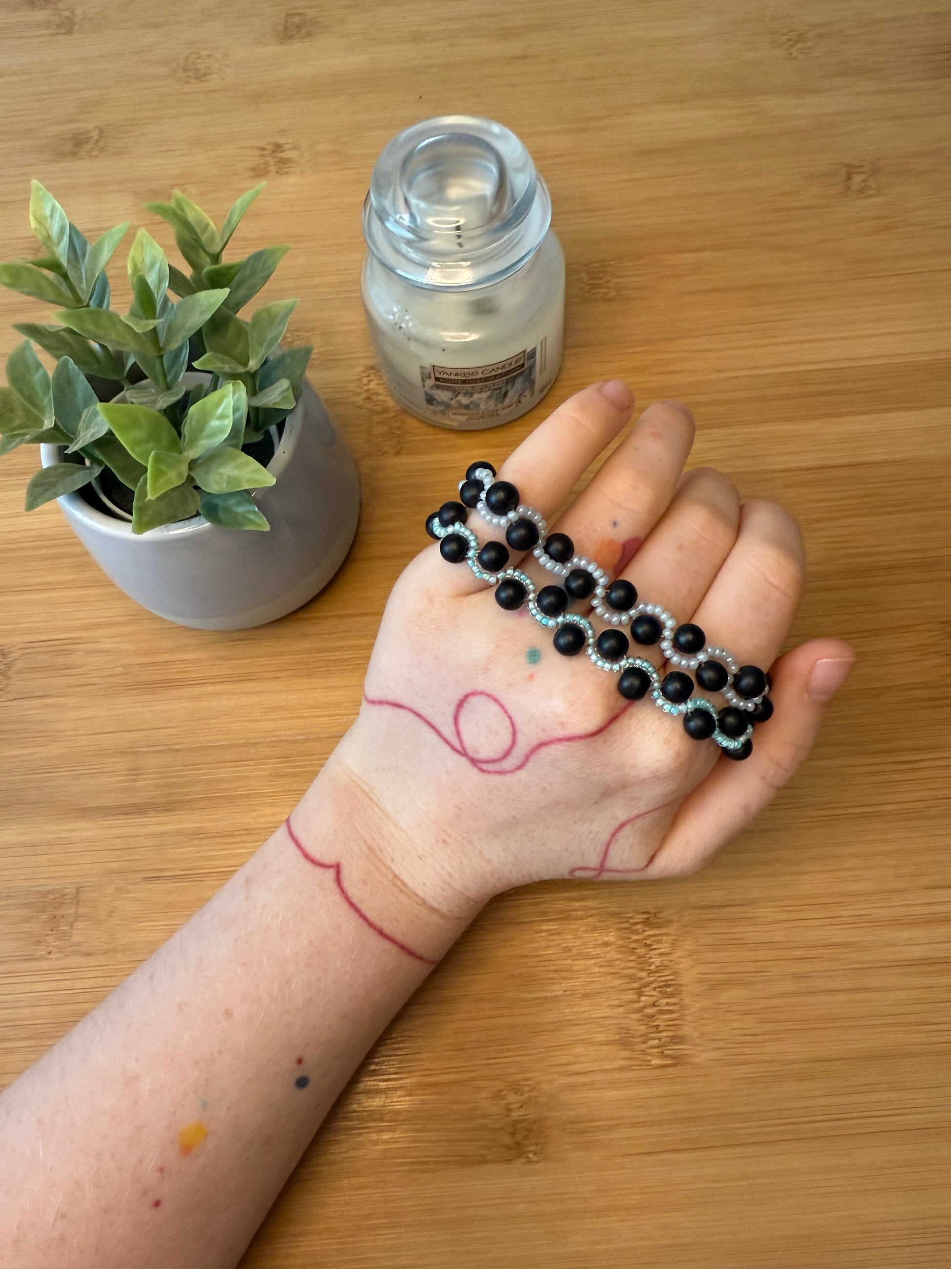 Originální ručně tkaný náramek, který v sobě spojuje tradiční řemeslo a moderní design. Každý kus je pečlivě vyráběn z kvalitních českých skleněných korálků Preciosa a nese jedinečný motiv, díky kterému se stává osobitým doplňkem pro každodenní nošení i speciální příležitosti.