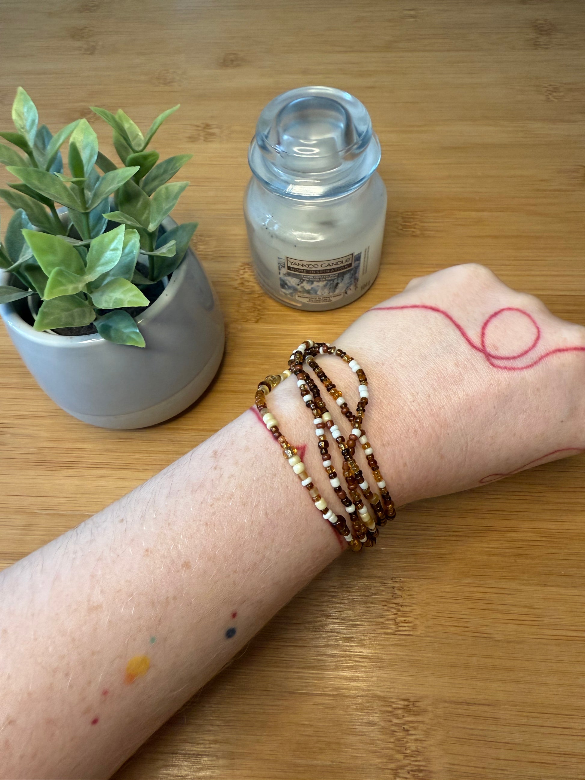 Originální ručně tkaný náramek, který v sobě spojuje tradiční řemeslo a moderní design. Každý kus je pečlivě vyráběn z kvalitních českých skleněných korálků Preciosa a nese jedinečný motiv, díky kterému se stává osobitým doplňkem pro každodenní nošení i speciální příležitosti.